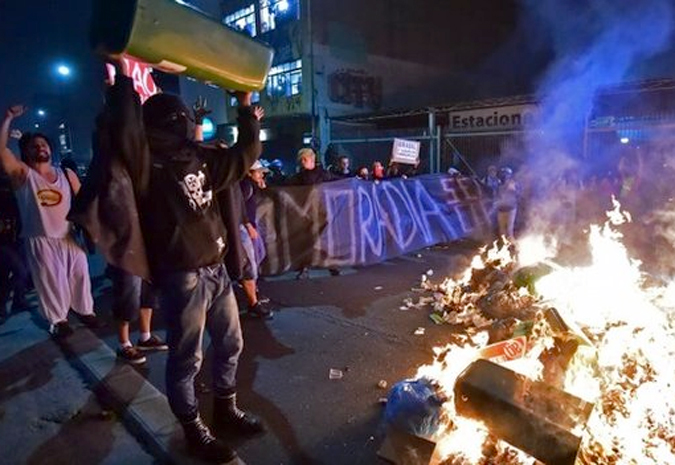 Hekk kif fadal madwar tliet ġimgħat biex tibda t-Tazza tad-Dinja, eluf ta’ dimostranti reġgħu niżlu fit-toroq ta’ bliet ewlenin Brażiljani jipprotestaw kontra n-nefqa biex dan il-pajjiż jospita l-akbar avveniment sportiv fid-dinja. Il-Pulizija kellha tispara l-gass tad-dmugħ biex tferrex lid-dimostranti f’Rio de Janeiro, Sao Paulo u diversi bliet oħrajn madwar il-pajjiż.