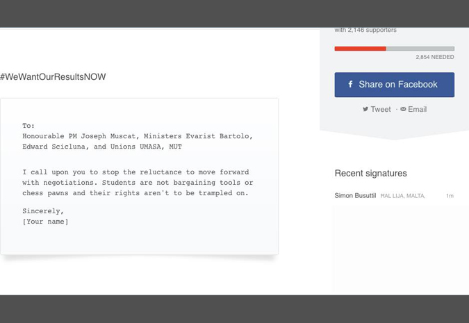 Dan l-iżvilupp wasal biss ġurnata wara li l-Kunsill Studenti Universitarji beda petizzjoni li fiha appella biex l-istudenti ma jibqawx jintużaw bħala arma f’idejn il-Gvern u l-Unions u jinħarġu r-riżultati. Sal-hin li d-direttivi ġew irtirati, din il-petizzjoni kienet ġiet iffirmata minn 2,605 persuna.