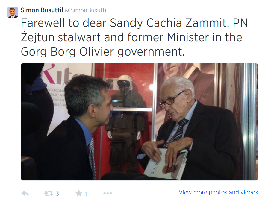 Sadanittant, fi tweet, il-Kap tal-Oppożizzjoni u tal-PN Simon Busuttil sellem lil “Sandy” u sejjaħlu persuna leali u li ħadem ħafna fiż-Żejtun, kif ukoll eks Ministru fil-Gvern ta’ Ġorġ Borg Olivier.