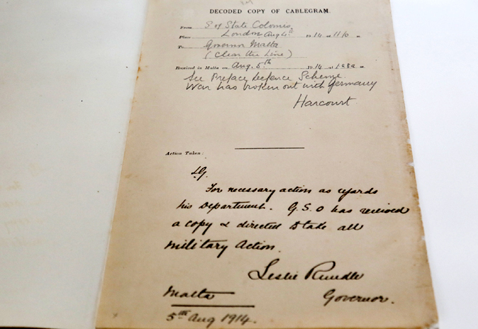 Fil-post hemm esebiti t-telegramm li kien intbagħat minn Londra fil-5 ta’ Awwissu 1914, li jiddikjara l-Gwerra mal-Ġermanja, kif ukoll il-Proklama li nħarġet mill-Gvernatur Leslie Rundle biex jinforma lill-poplu Malti li pajjiżna kien fi Gwerra (ritratt). Is-sett ta’ postcards fih 12-il ritratt differenti mill-kollezzjoni ta’ Arkivji privati ta’ Ellis. Charles Farrugia tkellem dwar il-valur tad-dokumenti antiki anke għall-ħajja tal-lum.