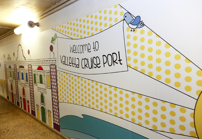 Grupp ta’ studenti tal-Istitut tal-Arti u d-Disinn tal-MCAST li kienu qed jagħmlu Degree fil-Graphic Design and Interactive Media għamlu xogħol ta’ tpinġija fil-mina fit-Terminal Forni tal-passiġġieri tal-cruise liners fil-Valletta Cruise Port. L-istudenti taw interpretazzjoni viżiva tal-espressjoni kulturali f’Malta fil-forma ta’ vjaġġ tul il-mina, li minnha jgħaddu eluf ta’ passiġġieri tal-cruise liners li jaslu f’Malta kull sena.