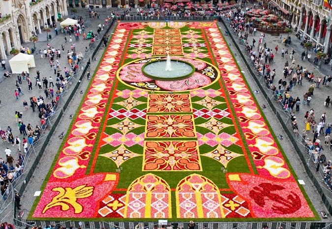 Avveniment ta’ kull sena li jsir f’dan ix-xahar u li jsaħħar lil kull min iżurha. Qed nitkellmu dwar il-Grand Place fi Brussel. Pjazza li tinbidel f’tapit ta’ eluf ta’ fjuri b’ilwien roża u ħomor tal-Begonja.