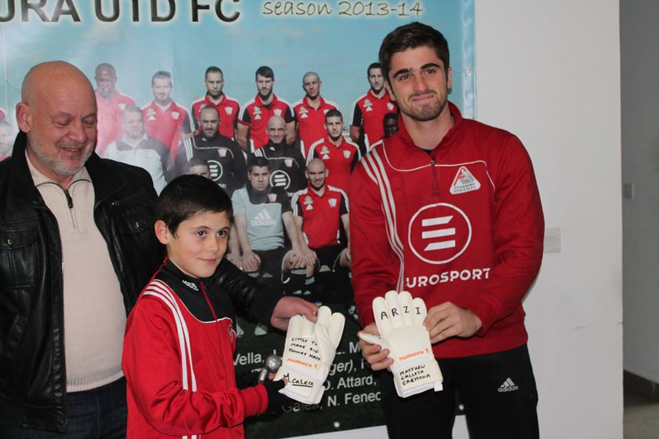 Calleja Cremona ma nesiex dan il-ġest u l-Erbgħa filgħaxija żar il-grawnd ta’ Fgura u wara s-sessjoni tat-taħriġ ta’ Jarzi ppreżentalu par ingwanti fejn fuqhom kellhom il-kitba “Little Things Make Big Things Happen”.