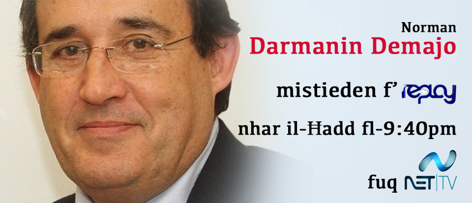 Nhar il-Ħadd li ġej, il-President tal-MFA Norman Darmanin Demajo se jkun il-mistieden waqt il-programm Replay fl-9:40pm fuq Net Television. Darmanin Demajo se jkun qed jitkellem dwar il-ħidma tal-akbar assoċjazzjoni sportiva f’Malta u ma jistax jonqos li ma jitkellimx dwar temi attwali li f’dawn l-aħħar xhur iddominaw il-programmi televiżivi tal-futbol lokali fosthom ir-riforma fil-players status u l-ġlieda kontra l-korruzzjoni u l-match fixing.