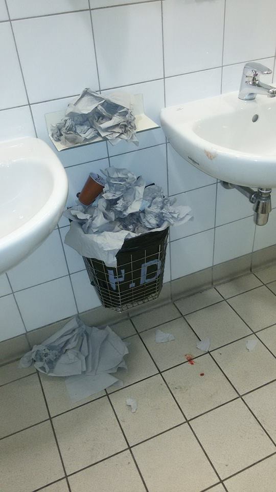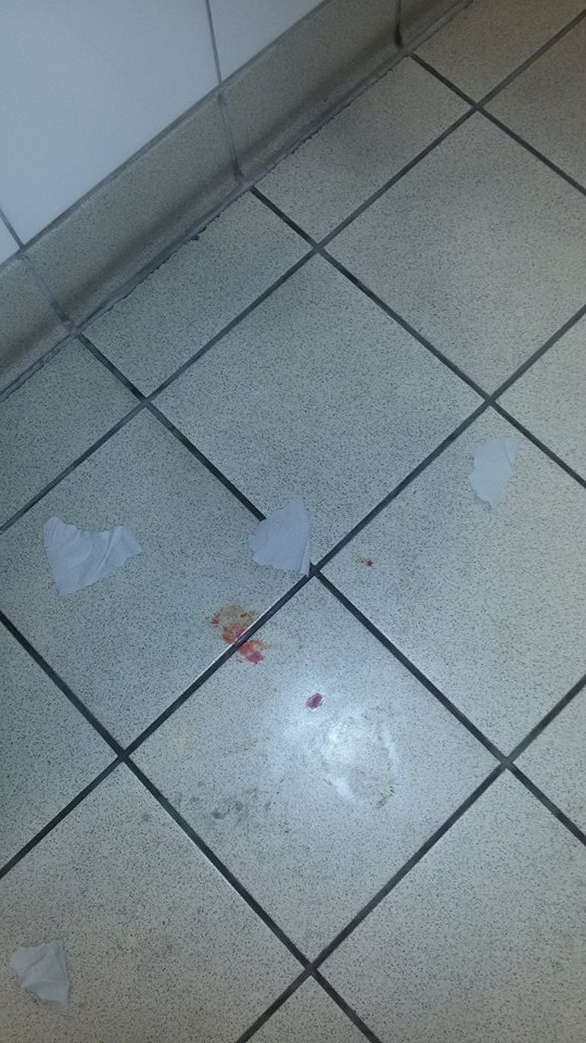 Dawn ir-ritratti ttieħdu f’wieħed mit-toilets tal-Outpatients, fejn kif jidher, il-bins qed ifuru bil-ħmieġ u mal-art saħansitra wieħed jista’ jinnota taqtir tad-demm u tiċpis tad-demm mas-sink.