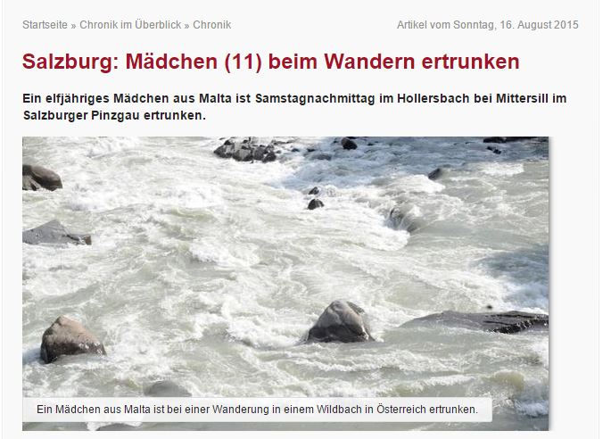 Il-każ traġiku seħħ nhar il-15 t’Awissu fl-Awstrija, fejn aktarx it-tifla ta’ 11-il sena nġarret għal tul ta’ 800 metru f’xmara qabel din instabet mill-Pulizija Awstrijaki.