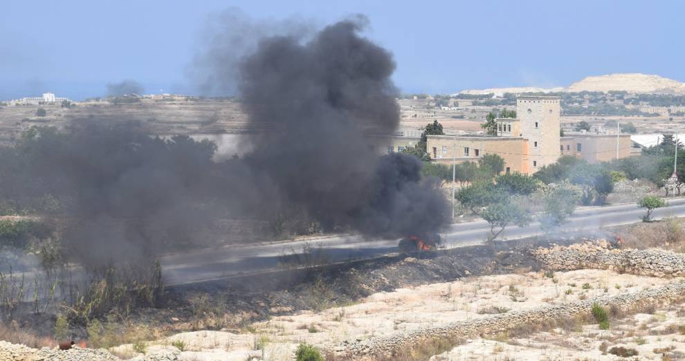 In-nar beda f’għalqa żgħira li tinsab biswit fejn kienet ipparkjata l-vettura. Dan għamilha iktar diffiċli għall-uffiċjali tal-Protezzjoni Ċivili biex jikkotnrollaw in-nar milli jkompli jinfirex.