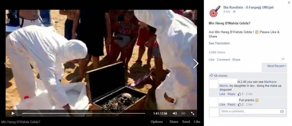 Il-grupp satiriku ‘Bla Kondixin’ kien il-moħħ wara ċ-ċajta tal-iskeletru f’Għajn Tuffieħa.