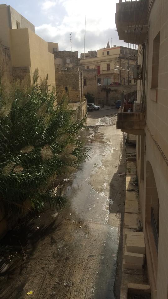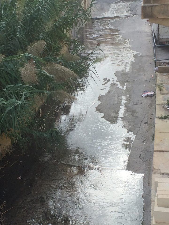 Id-drenaġġ qed joħroġ fi Triq Santa Rita, għal Sqaq il-Wied numru 1, Triq il-Qasab u lejn Valley Road fl-Imsida.