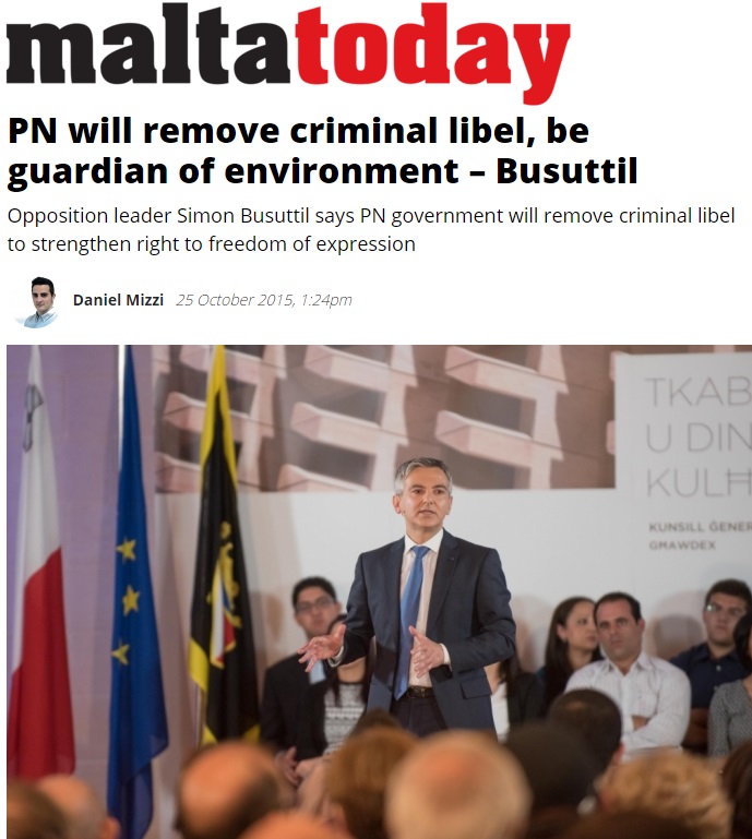 Il-Kap tal-Partit Nazzjonalista Simon Busuttil qal li bit-tneħħija tal-libell kriminali jissaħħaħ id-dritt tal-liberta’ tal-esperessjoni biex b’hekk kompla fuq l-appell tal-Maġistrat Francesco Depasquale, li hu wkoll appella għat-tneħħija tal-libell kriminali għaliex qal li dan jipprovoka l-korrużjoni tal-libertajiet fundamentali.