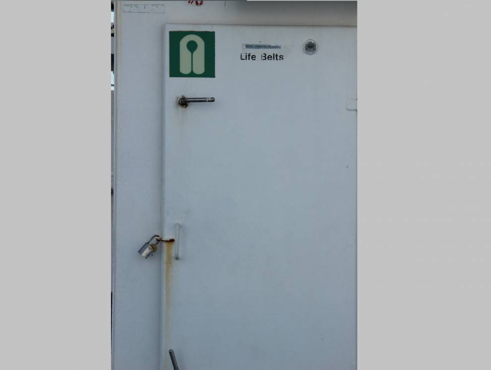 Persuna bagħtet dan ir-ritratt, ta’ katnazz li jsakkar il-bieb minn fejn wieħed ikun jista’ jieħu ġakketta tas-salvataġġ f’każ ta’ emerġenza.