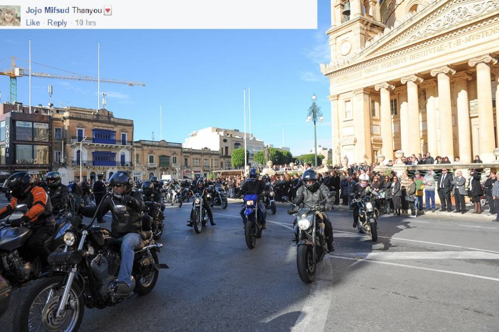 B’messaġġ qasir ta’ żewġ kelmiet imma sinifikattiv f’dan il-mument diffiċli, omm Johanna Boni, it-tfajla ta’ 27 sena li tilfet ħajjitha traġikament iktar kmieni din il-ġimgħa, irringrazzjat lis-sewwieqa tal-muturi li lbieraħ mexxew kortea mill-Isptar Mater Dei sar-Rotunda, fejn sar il-funeral.