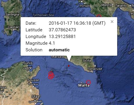 kejjel qawwa ta’ 4.1 fuq l-Iskala Richter. It-terremot seħħ fil-5:36pm qrib Sqallija.