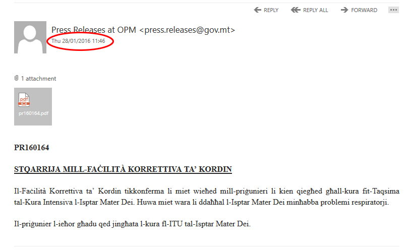 Id-Dipartiment tal-Informazzjoni: Il-priġunier miet f’xi ħin filgħodu
