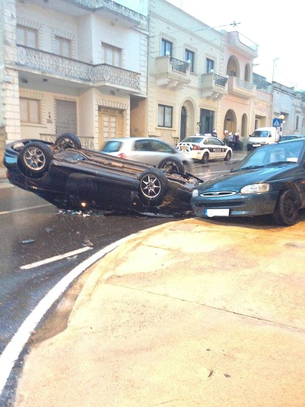 Ħadd ma’ weġġa meta karozza nqalbet wara inċident tat-traffiku fi Triq l-Imġarr f’Għajnsielem.