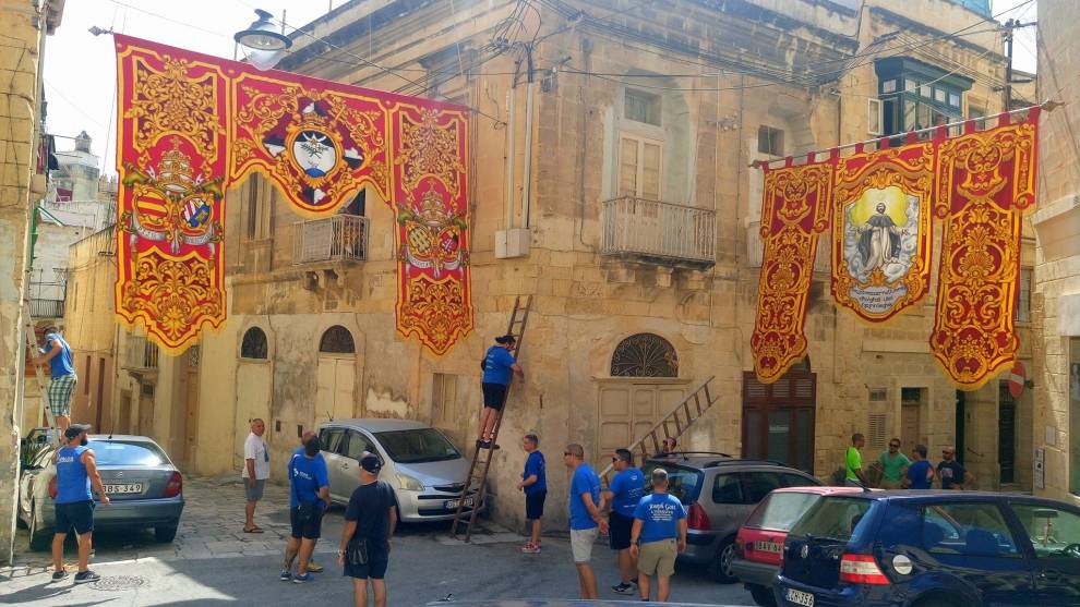 Dan hekk kif fil-Birgu, imlibbes libsa kkulurita ta’ armar għall-festa ta’ San Duminku tal-Ħadd li ġej, il-partitarji ta’ San Duminku ħarġu jiġru biex iżarmaw mal-ewwel qtar tax-xita, u dlonk ħarġu jassistuhom dawk affiljati mal-festa ta’ San Lawrenz.