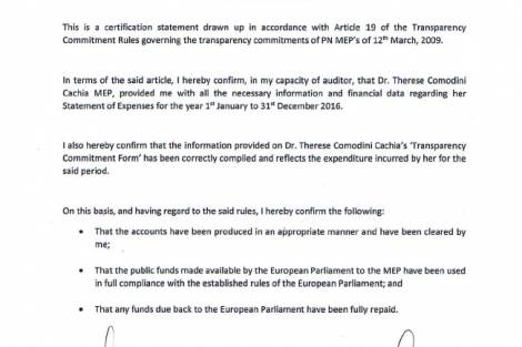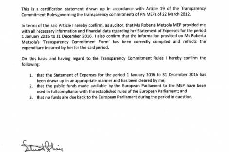 Il-Membri Parlamentari Ewropej eletti f’isem il-Partit Nazzjonalista huma marbuta b’impenn ta’ trasparenza. Il-fondi allokati lill-MEPs tal-Partit Nazzjonalista huma dikarjati, awditjati u pubblikati. Dan hu proċess rigoruż. Ma’ din l-istqarrija qed jiġu ppubblikati Certification Statement li huma prova mill-aktar qawwija tal-gidba ta’ Joseph Muscat.