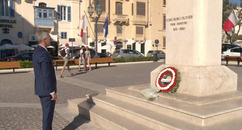 Il-Kap tal-Partit Nazzjonalista Simon Busuttil isellem lill-eks Prim Ministru u eks Kap tal-Partit Nazzjonalista Ġorġ Borg Olivier fl-okkażjoni tal-106 sena mit-twelid tiegħu.