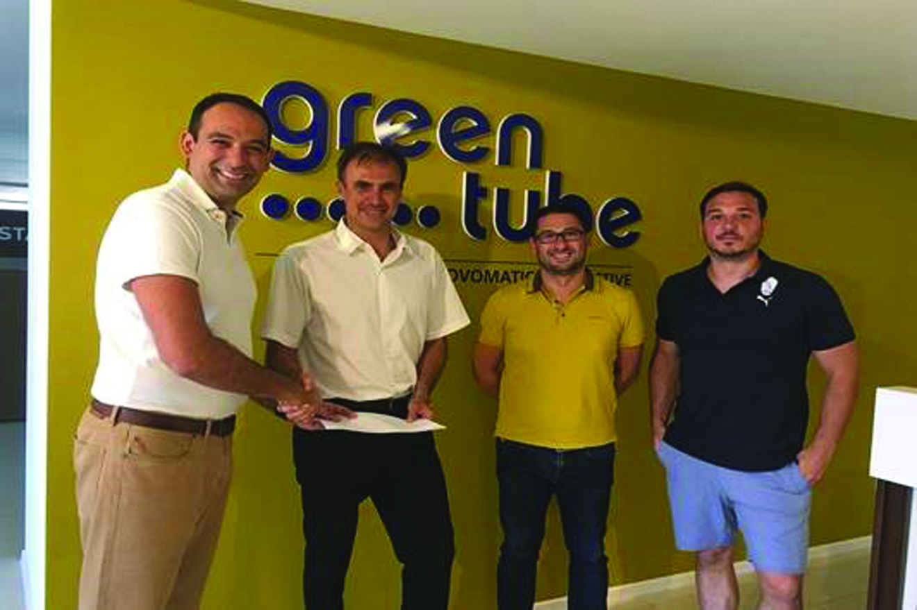 Id-Direttur Maniġerjali ta' Greentube Trevor Degiorgio flimkien mal-Viċi President ta' John Farrugia, fil-preżenza ta' Owen Grech u l-plejer ta' Sirens John Brownrigg