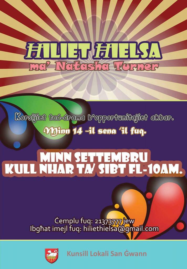 Għall-ewwel sena, il-Kunsill Lokali ta’ San Ġwann, se jorganizza kors tad-drama mill-għalliema u l-awtriċi Natasha Turner. Turner tikteb u ttella’ żewġ drammi fl-iskola fejn tgħallem.