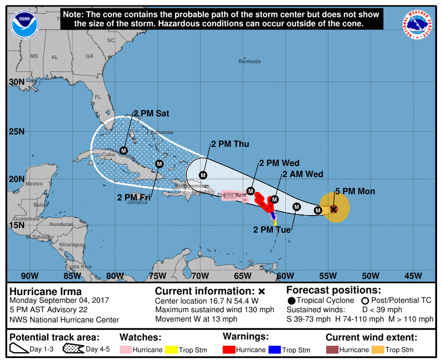 Uragan li qed iqanqal riħ li qed jilħaq it-300 kilometru fis-siegħa u l-ewwel art li mistenni jmiss hi Leeward Island qabel ma jimxi lejn Puerto Rico u r-Repubblika Domenikana. Imbagħad bejn is-Sibt u l-Ħadd il-maltemp jasal f’Key West fi Florida.