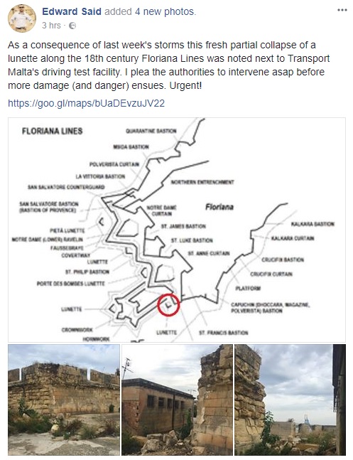 Il-maltemp tal-ġimgħa li għaddiet għamel numru ta’ ħsarat f’bosta bnadi madwar pajjiżna, dan fost oħrajn lis-swar tal-Floriana li jagħmlu parti mill-Floriana Lines.