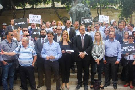 Wara li ltaqgħu qrib il-Parlament, fejn twassal messaġġ li ħadd u xejn mhu se jwaqqaf lill-ġurnalisti milli jivnestigaw u jippubblikaw il-verità, dawk preżenti mxew flimkien lejn il-monument tal-Assedju quddiem il-Qorti ta’ Malta.