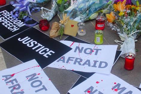 Hawn, il-messaġġi ‘Ġustizzja’, ‘Libertà tal-Espressjoni’ u ‘Ma Nibżgħux’ tpoġġew qalb ix-xemgħat u fjuri li għall-aħħar sigħat tpoġġew taħt dan il-monument bħala tifkira ta’ Daphne Caruana Galizia u messaġġ għall-ġustizzja.