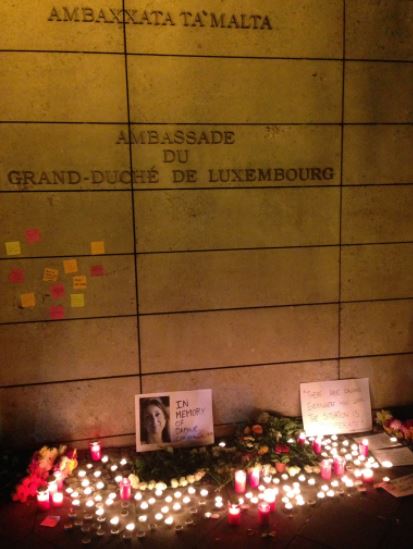 Kienu diversi l-persuni li nġabru quddiem l-ambaxxata Maltija u waqt li kien poġġew ritratt tal-ġurnalista, poġġew ukoll diversi xemgħat u messaġġi ta’ kondoljanzi.