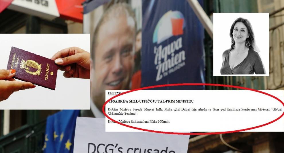 Waqt li llum il-Parlament Ewropew iddedika ġurnata jsellem u jonora lil Daphne Caruana Galizia u fi żmien ta’ traġedja nazzjonali f’Malta, illejla l-uffċċju tal-Prim Ministru ħabbar li Joseph Muscat ħalla Malta lejn Dubaj biex għada jbiegħ il-passaport waqt attivita’ li qed tkun organizzata.
