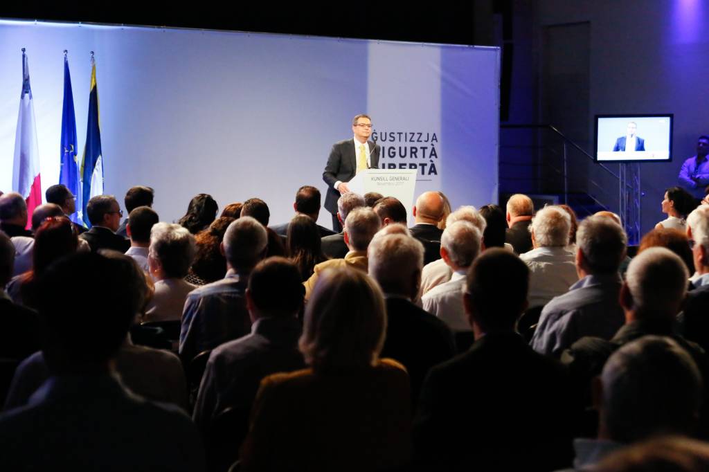 Ir-responsabbiltà f’dan il-mument storiku hija kbira. Il-Partit Nazzjonalista se jkun aktar minn qatt qabel l-aktar partit rilevanti f’pajjiżna. Jien mhux se nibża’, jien se nibqa’ hawn. Se nibqa’ hawn għax huwa d-dmir tiegħi li nibqa’ hawn. Dan qalu l-Kap tal-Partit Nazzjonalista Adrian Delia meta kien qed jindirizza l-Kunsill Ġenerali tal-Partit Nazzjonalista bit-tema ‘Ġustizzja. Sigurtà. Libertà.’