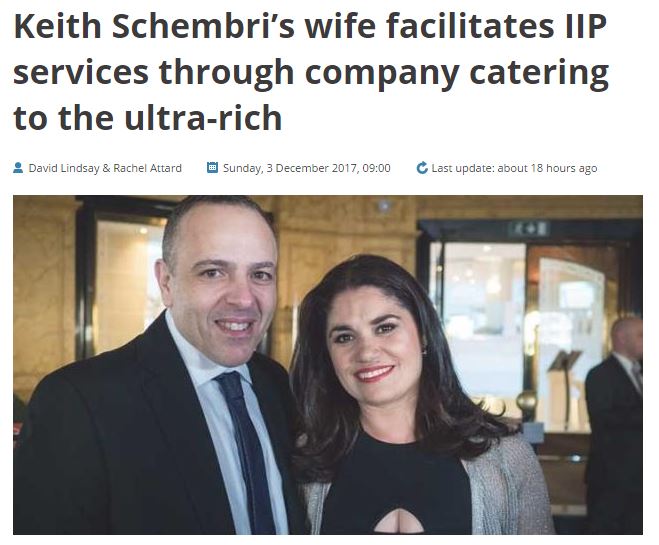 Is-servizzi li toffri l-kumpanija tal-mara ta’ Keith Schembri f’dak li għandu x’jaqsam mal-bejgħ tal-passaporti jqajjem mistoqsijiet dwar kunflitt ta’ interess. Filfatt, The Malta Independent tfakkar li Keith Schembri, bħala Chief of Staff tal-Prim Ministru, idur id-dinja ma’ Joseph Muscat meta dan isiefer biex ibigħ il-passaporti Maltin. Imma mistoqsi minn The Malta Independent, Keith Schembri insista li ‘Temple Concierge’ hija ta’ martu, u li hu m’għandu xejn x’jaqsam magħha.