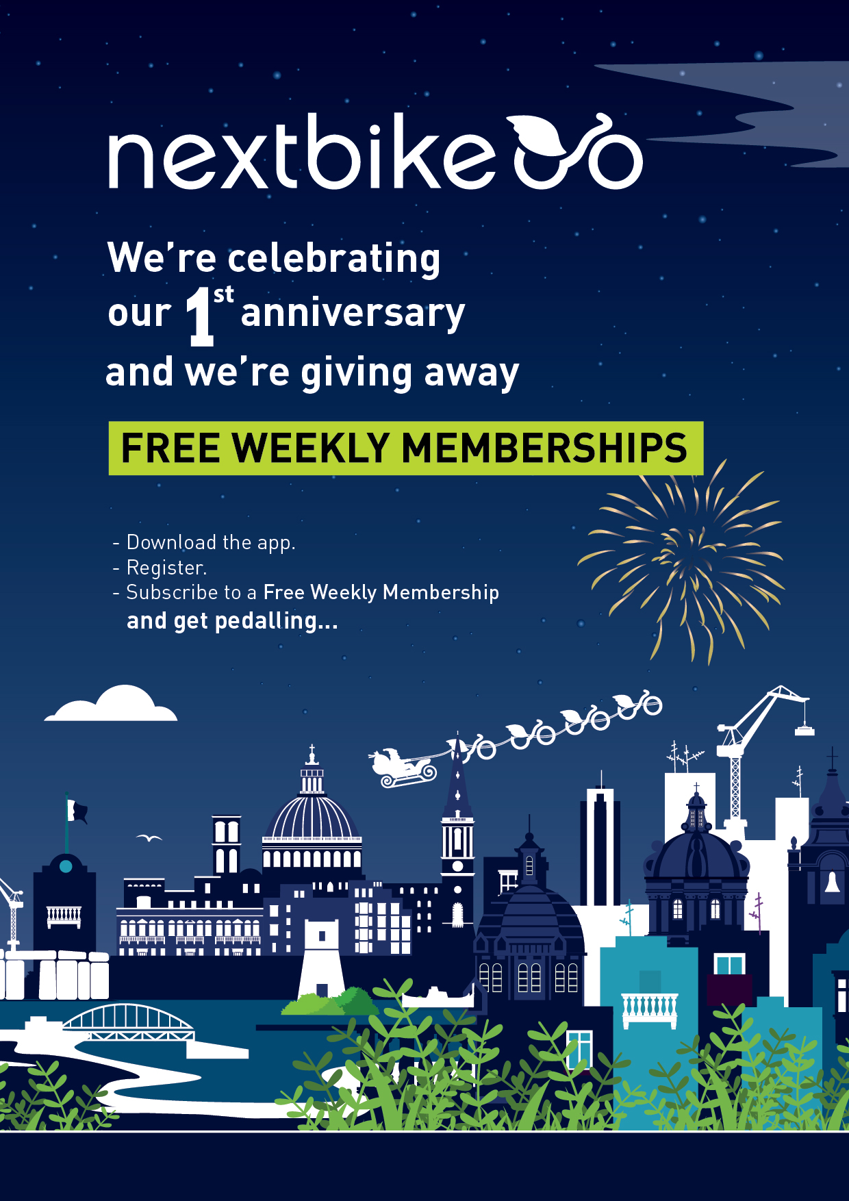 Fl-okkażjoni tal-ewwel anniversarju minn dan is-servizz f’Malta, il-kumpanija Nextbike qed tagħti abbonamenti b’xejn għal ġimgħa sħiħa għal konsumaturi eżistenti u dawk li jitħajru jissieħbu matul ix-xahar ta’ Diċembru.