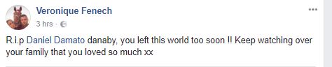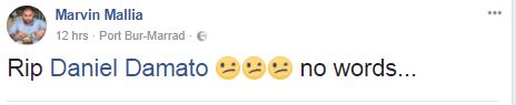 Fuq il-midja soċjali kienu għexieren il-messaġġi ta’ kondoljanzi li nkitbu dwar Daniel Damato. fost ohrajn it-tfajla ta’ Daniel, li kitbet “ma nistax nemmen kif tliftek għal dejjem… għallimtni nerġa’ nħobb u se tibqa’ għal dejjem f’qalbi.”
