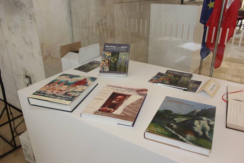 Dawk li jattendu qed jiġu mitluba jiffirmaw fi ktieb apposta filwaqt li hemm tliet kotba dwar il-pitturi tat-tliet artisti. Wieħed għandu ċ-ċans li jżur din l-esebizzjoni kuljum sal-11 ta’ April fl-entratura tal-Parlament.