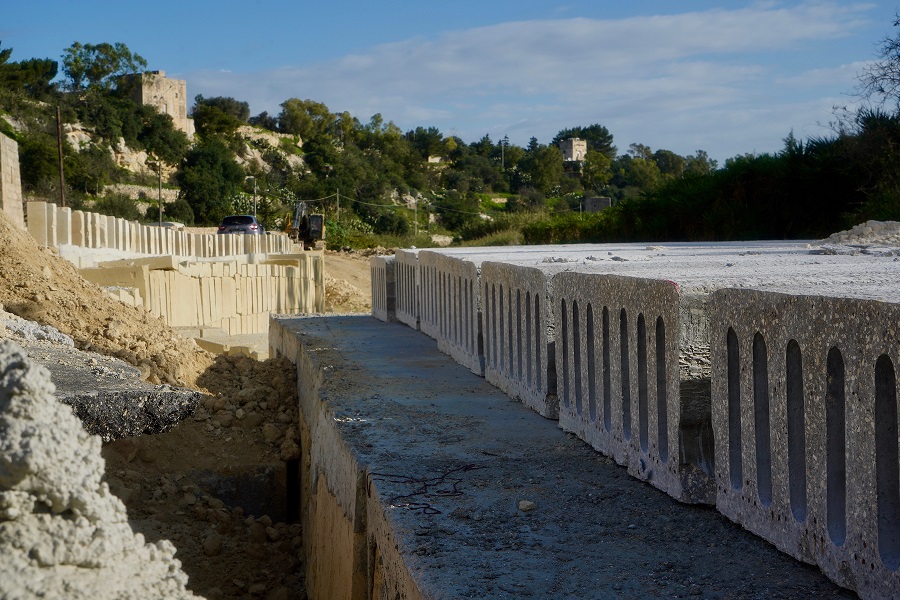 Dan il-pont tal-konkos, li huwa xi 9 metri wiesa’, qed jinbena biex joħloq aċċess bejn naħa u oħra tal-wied biex jinqeda l-avukat, perit u konsulent tal-Gvern, Robert Musumeci. Il-pont se jieħu post id-diga tal-konkos, li tpoġġiet ukoll illegalment kważi 20 sena ilu.