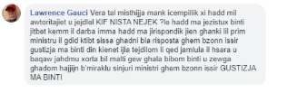F’kumment fuq il-post ta’ Caroline, Lawrence Gauci saħaq li s-sitwazzjoni hija waħda tal-mistħijja. Hu saħaq li anke kiteb lill-Prim Ministru Robert Abela li iżda injorah għal kollox u ħallih mingħajr risposta.
