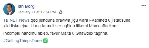 Hija din ir-risposta li tana l-Ministru tat-Trasport wara li aktar kmieni din il-ġimgħa qalilna li mhux affari tagħna xi jsir fil-Kabinett.