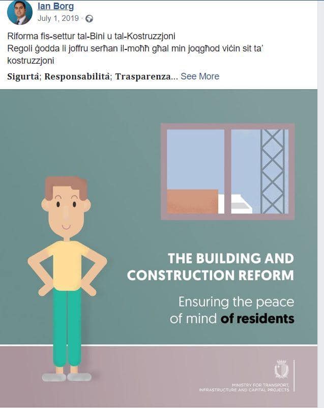 Ian Borg kien il-Ministru responsabbli mill-Avviż Legali li kien ħareġ biex jirregola l-kostruzzjoni wara li is-sena li għaddiet waqgħu tliet binjiet f’temp ta’ ftit ġimgħat.
