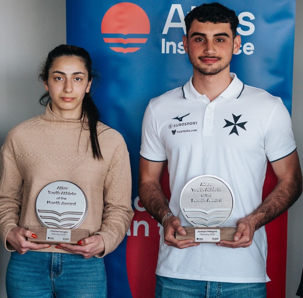 It-trofew tal-Atlas Atleta Żagħżugħ/a tax-Xahar għal Frar 2024 ġew ippreżentati lil Cherise Farrugia u Graham Pellegrini minn Matthew von Brockdorff, Direttur Maniġerjali u Kap Eżekuttiv, flimkien ma’ Robert Micallef, Chief Commercial Officer ta’ Atlas Insurance u mis-Segretarju Ġenerali tal-Għaqda Ġurnalisti Sports, Lorraine Cunningham.