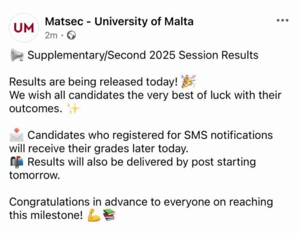 Dan għadu kemm ġie mħabbar permezz ta’ post fuq il-midja soċjali tal-MATSEC stess.