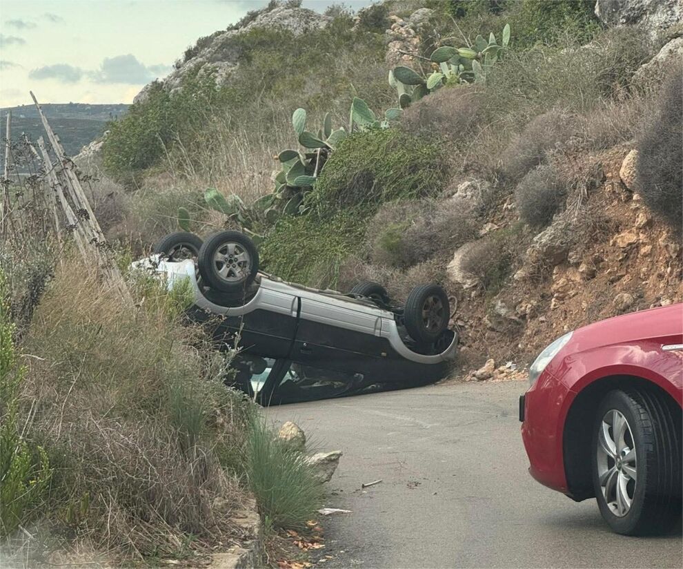 Tinqaleb karozza fi Triq il-Miżieb fil-Mellieħa