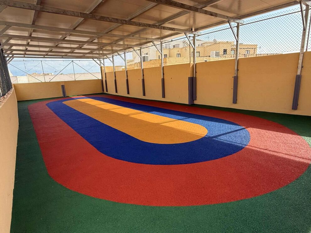 Din il-faċilità ġdida li xi darba kienet spazju bil-konkrit – issa nbidlet f’żona moderna u sigura għall-istudenti. Il-bdil li sar jinkludi minn art tar-rubber, fencing u panelling tas-saqaf ġdid.