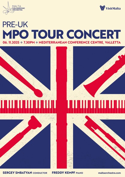 Qabel it-tour tal-Orkestra Filarmonika ta’ Malta fir-Renju Unit taħt id-direzzjoni tad-Direttur Mużikali Sergey Smbatyan fir-Renju Unit, l-Orkestra Filarmonika ta’ Malta se tippreżenta programm speċjali għall-udjenza Maltija b’kunċert f’Dar il-Mediterran fil-Belt Valletta, nhar il-Ħamis 6 ta’ Novembru.