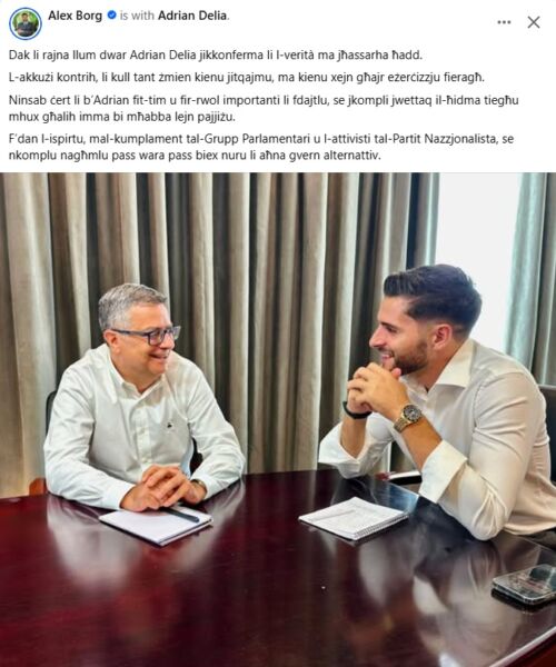 Intant il-Kap tal-PN Alex Borg li dak li rajna llum dwar Adrian Delia jikkonferma li l-verità ma jħassarha ħadd.