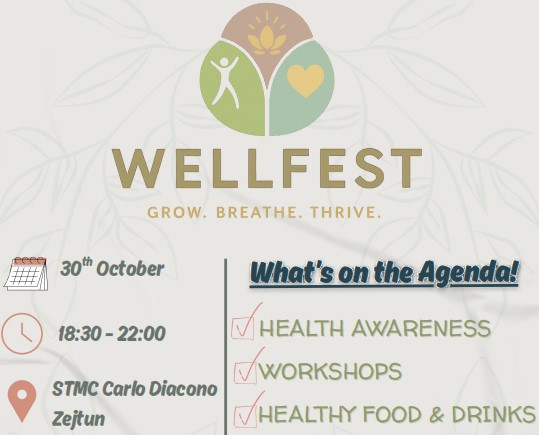 Il-Kulleġġ San Tumas More, Carlo Diacono, se jorganizza WellFest, festival li jgħaqqad il-benesseri mentali, emozzjonali, soċjali u fiżiku permezz ta’ kollaborazzjoni ma’ diversi NGOs, professjonisti tas-saħħa, edukaturi u għaqdiet oħra.