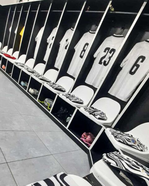 Id-dressing room ta’ Hibernians, ippreparata qabel waħda mill-partiti tal-Malta Premier.
