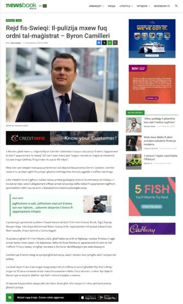- Artiklu tat-Times of Malta bit-titlu: “Armed police storm Swieqi apartment in botched raid, terrifying residents”, fejn irrappurtaw: ”Speaking to Times of Malta, Home Affairs Minister Byron Camilleri stressed the raid was made on the order of a magistrate” ippubblikat fil-11 ta’ Novembru 2025