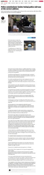 - Artiklu tal-MaltaToday bit-titlu: “Police commissioner insists Swieqi police raid was at the correct address” u s-sotto-titolu: ”Police Commissioner insists Tuesday’s police raid was at the correct address, after Home Affairs saying arrest warrants are issued by magistrate” ippubblikat fit-12 ta’ Novembru 2025