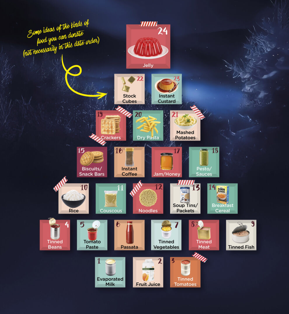 Bħalma kalendarju tradizzjonali tal-Avvent jagħti rigal jew sorpriża kuljum sa Jum il-Milied, ir-Reverse Advent Calendar iħeġġeġ lill-parteċipanti biex ipoġġu oġġett wieħed ta’ ikel f’kaxxa, kuljum għal 24 jum. Kaxxa kompluta ssir pakkett sħiħ ta’ ikel li jiġi mqassam direttament lil individwi u familji li jiġu valutati minn ħaddiema soċjali bħala każijiet ta’ bżonn urġenti.